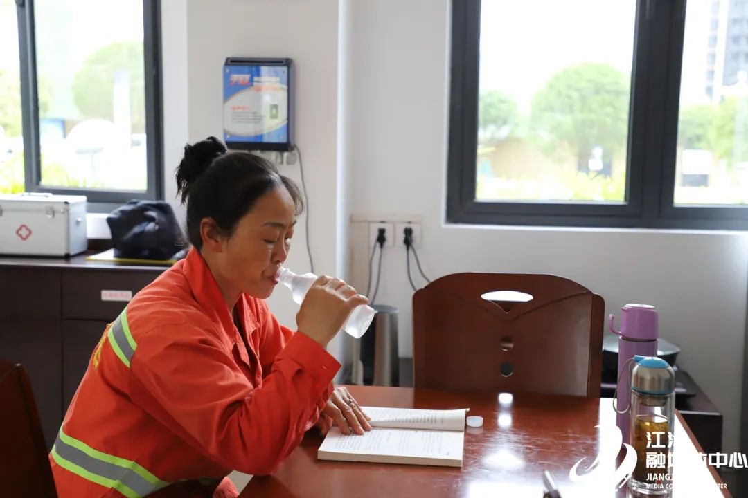 环卫工人龚阿姨走进小屋,轻车熟路地用水杯接水解渴,而后又从急救医药箱中取出藿香正气水消暑。“天气太热,工作累了我都会到这里来休息,喝点藿香正气水防中暑。”龚阿姨告诉记者,有这么个休息的地方挺好的。