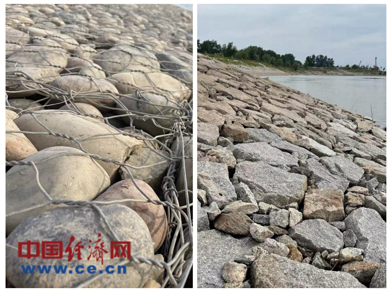 荆州二期项目第13标段石首向家洲段主要建设内容为水上雷诺护坡(图左)、水下膜袋混凝土及抛石加固(图右)。 中国经济网 刘其瑜 摄
