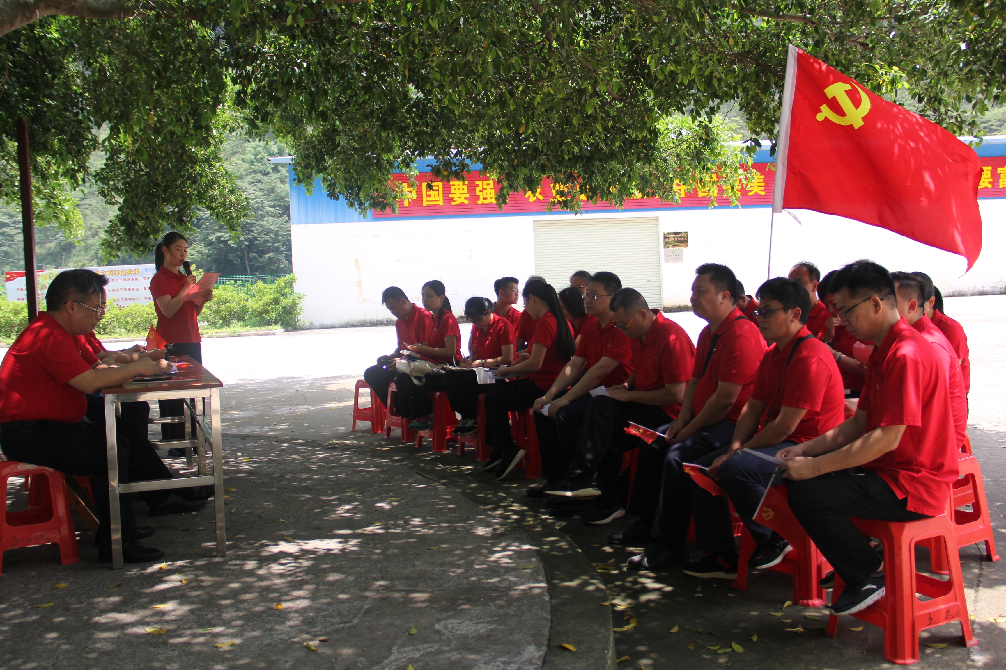 随后,全体党员干部在大榕树下开展表彰先进、过集体“政治生日”、重温入党誓词、读书分享会、基层党支部书记论“见”、专题党课等活动。“我志愿加入中国共产党,拥护党的纲领,遵守党的章程,履行党员义务”,在大榕树下,全体党员高举右手重温入党誓词,誓言铿锵,表达了党员干部矢志不渝守初心,奋发图强担使命的坚定信念。