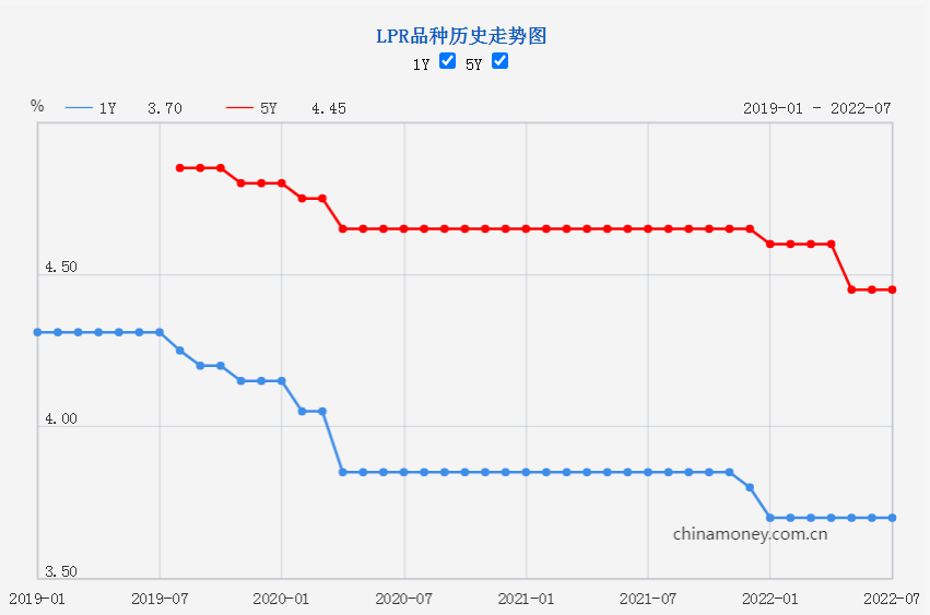 当日,中国人民银行授权全国银行间同业拆借中心公布,1年期LPR为3.7%,5年期以上LPR为4.45%,均较上一期保持不变。
