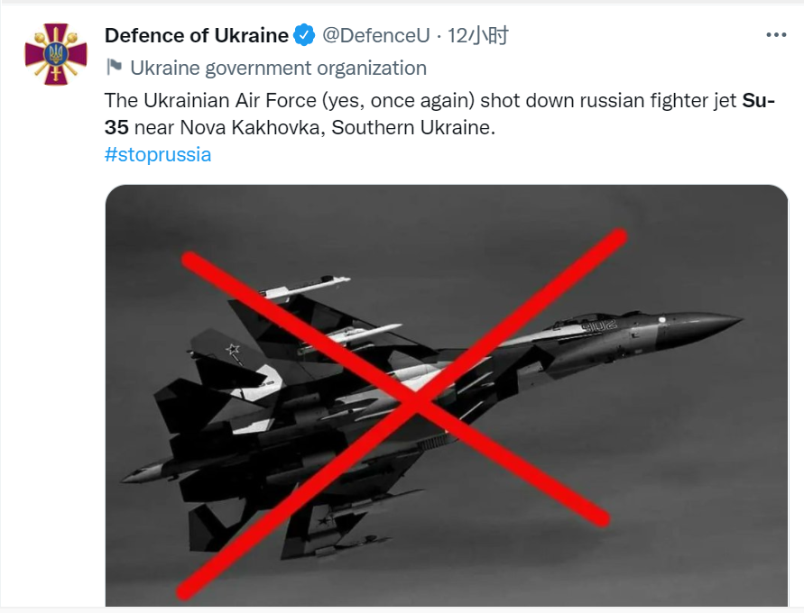 据美国“The drive”网站和乌克兰《基辅独立报》等媒体报道,当地时间19日,乌克兰军方在新卡霍夫卡地区击落了一架俄军苏-35战机。乌克兰国防部、乌克兰内政部长顾问安东·格拉申科均在社交媒体帐号上发布了相关消息。