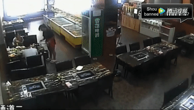 两情侣在餐厅内就餐,服务员准备倒酒精时突然起火,女生瞬间被火吞噬。