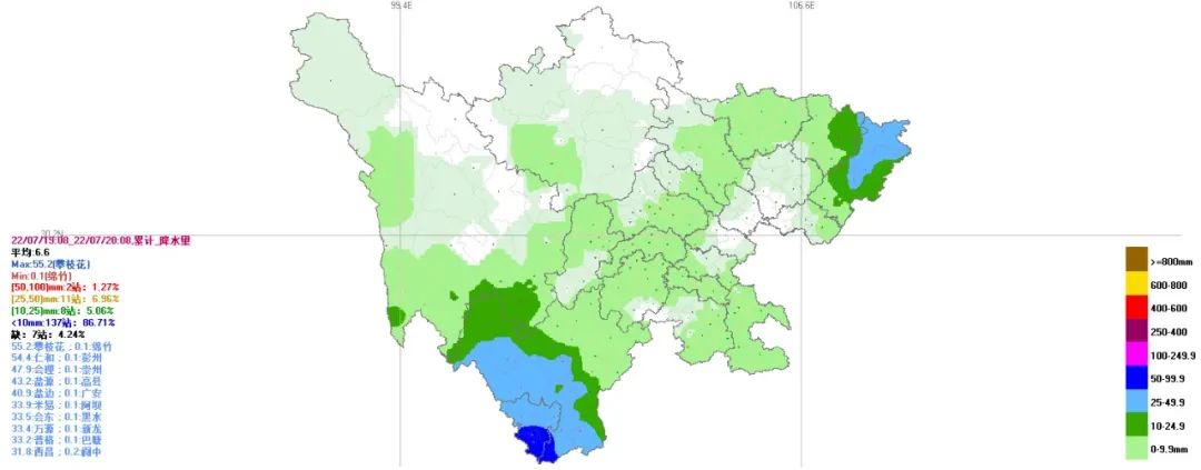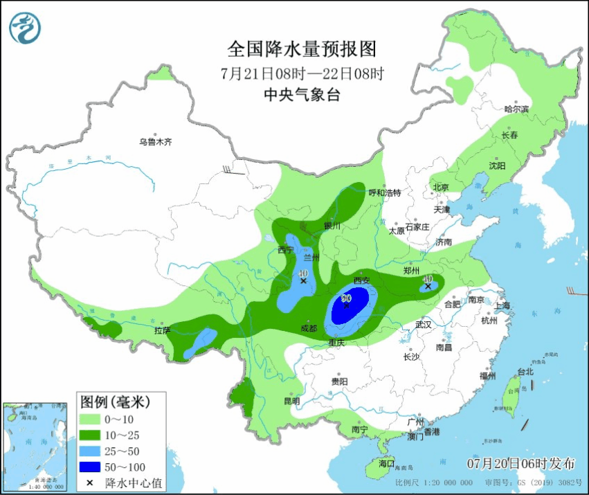 (19日08时-20日08时累计降雨量)