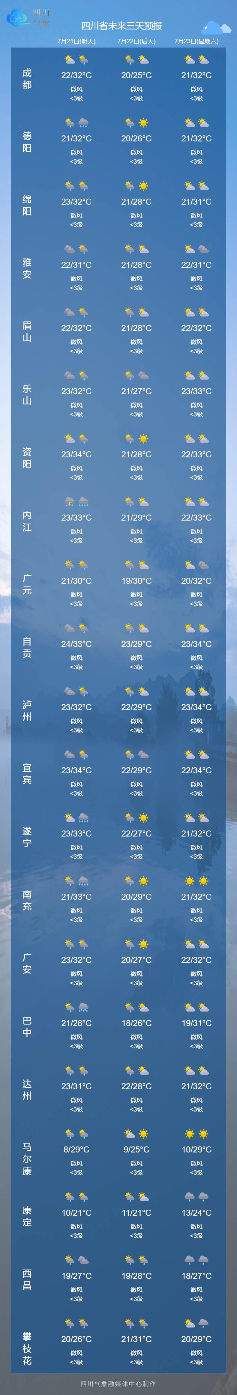 24小时内,盆地最低气温:21~23℃;最高气温:31~34℃。