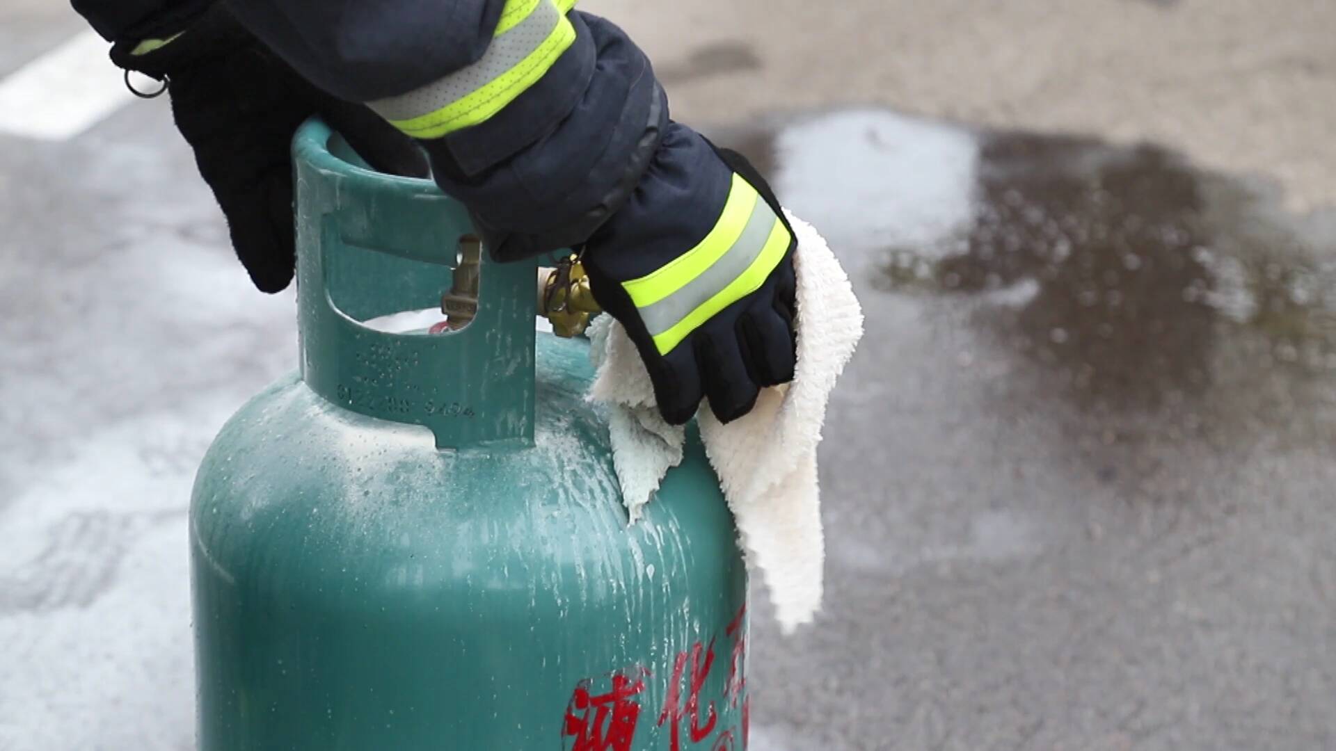 临沂市消防救援支队河东大队二级指挥员张红强说:“煤气罐初期着火大家一定不要害怕,这个时候一般不会爆炸,若阀门完好,可用湿抹布直接迅速覆盖并关闭阀门,这样就可以把火扑灭。”