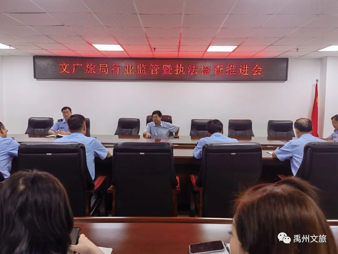 为进一步规范我市文旅市场经营秩序,扎实推进疫情防控、安全生产等相关工作,严格监管人员聚集或流动频繁的文化和旅游市场经营活动,为党的二十大胜利召开营造良好社会文化环境。根据省文旅厅、许昌市文广旅局安排部署,禹州市文广旅局以全体执法队员统一着装为契机,组织召开全行业监管暨集中执法检查推进会。