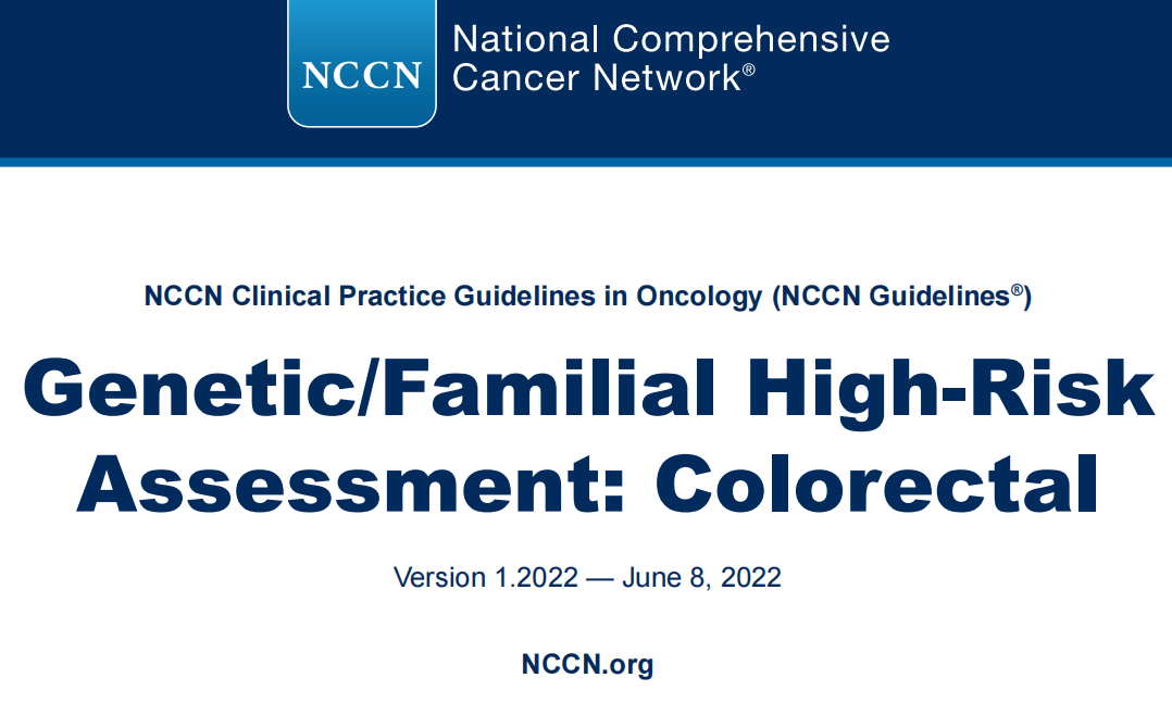 近日,NCCN发表了临床实践指南《遗传/家族性高危评估指南:结直肠癌》,为上述提及的疾病和等有高危CRC风险的疾病作出评估指导。一起来看看有什么干货吧~