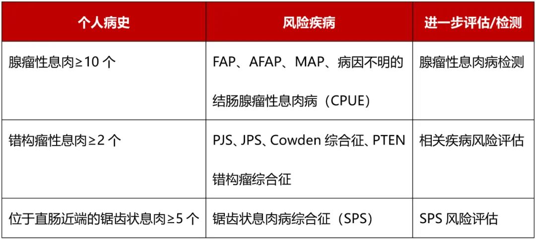 指南进一步指出,对于有以下情况的个体,有必要进行腺瘤性息肉病的评估: