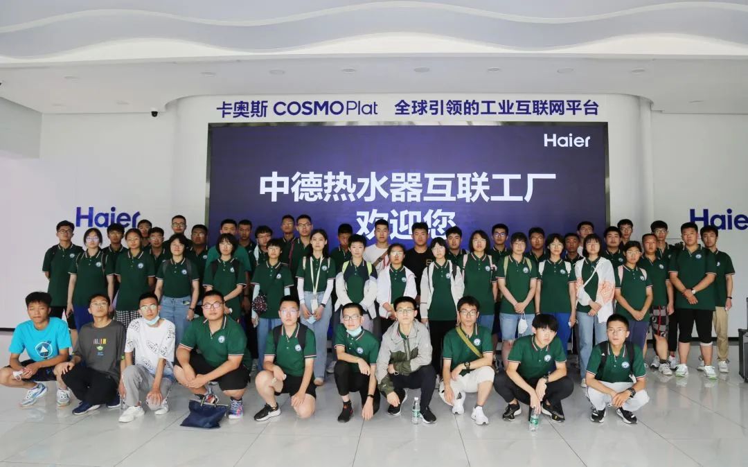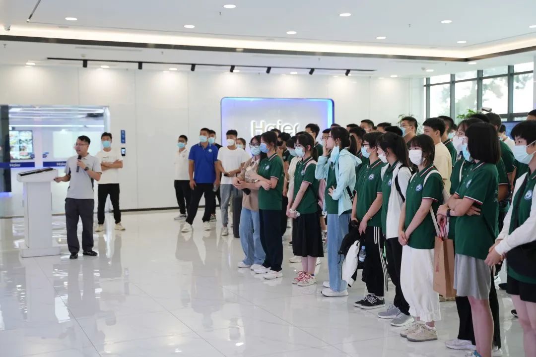 在海尔智能互联工厂冰箱制造的流水线上,从内胆制造,到压机、制冷系统再到组合装箱,每一道工序都有条不紊地进行着。来自济宁市第一中学的王子轩说:“看着冰箱一步步由最初简单的外壳,组装成日常生活中看到的冰箱,真是非常奇妙的过程。”在零部件展示区,同学们感受到工艺的巧妙和精湛,“两个零件看起来几乎一样。在细微的变化之间,却是产品性能的巨大提升。”来自德州市第二中学的曹欣格深受启发,“只有精益求精的钻研精神才能推动科技的进步,我们在学习中也要有这种钻研精神。”