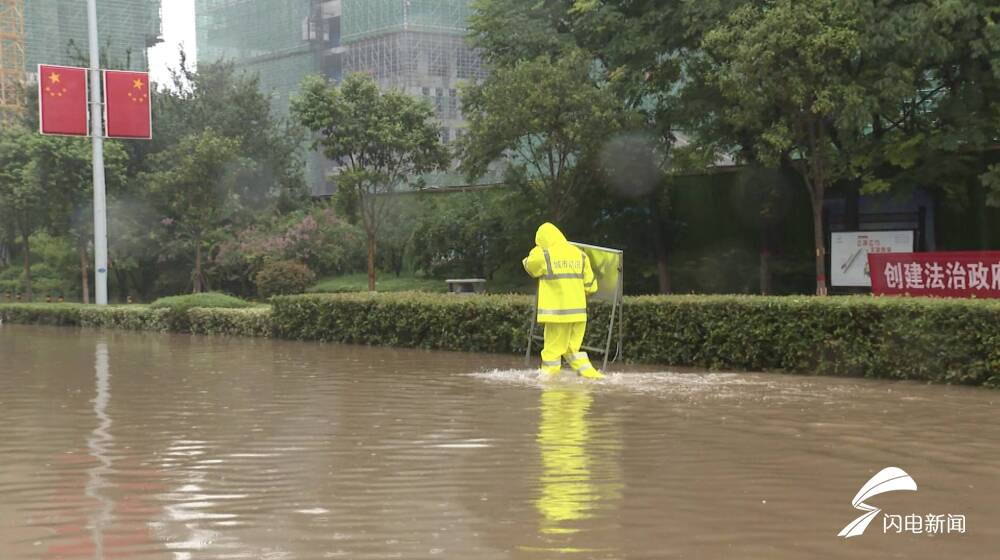 “雨情不停,我们不退。我们将始终坚守一线 ,设置隔离,确保人民生命财产安全。同时上足人员机械进行排涝,确保路面恢复畅通。” 枣庄市薛城区新城街道党工委委员、武装部长岳玉喜表示。