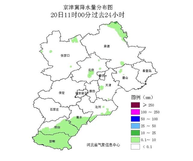 昨天夜间开始,河北省南部地区出现降水,今天上午11点随着雨带逐渐东移,降水趋于结束。