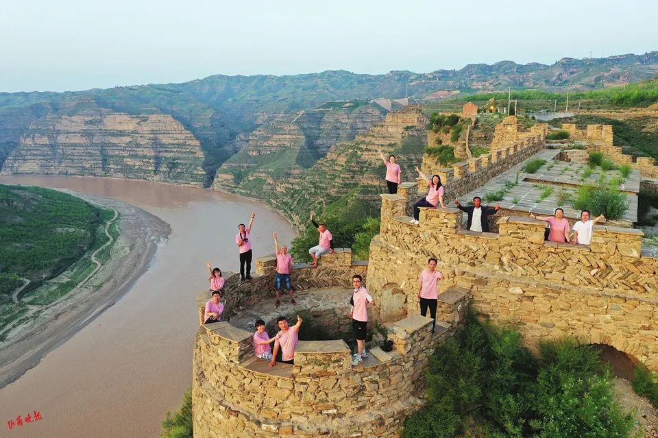 美丽山西生态行采访团记者在河边堡垒内合影。