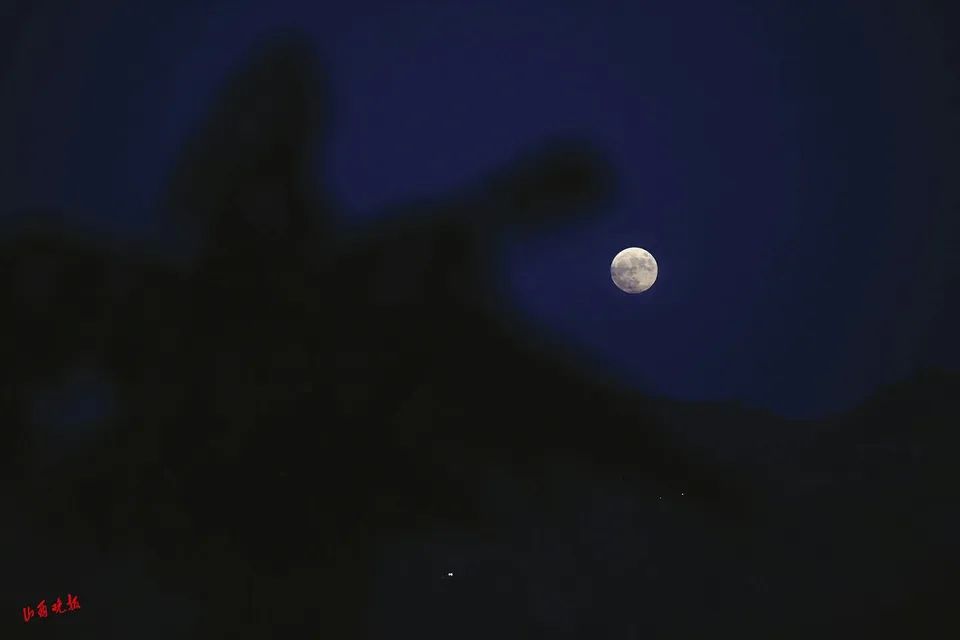 在黄河奇湾采访当晚,碰上了难得一见的“超级月亮”。