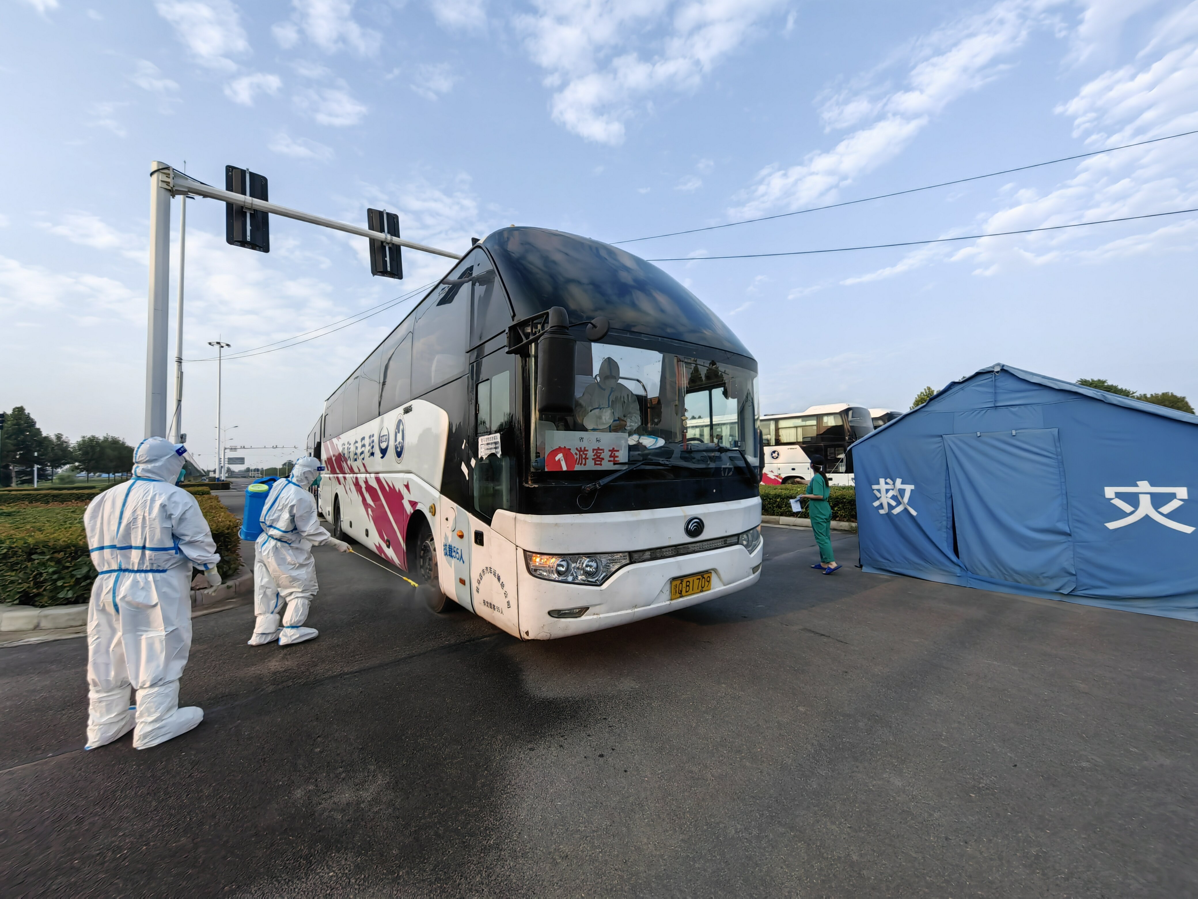 7月20晚8点,经过7天的集中隔离医学观察和严格完成各项检测后,驻马店泌阳县467名解除隔离人员满怀激动之情,快乐踏上回家路。禹州市卫健委党组书记、主任陈伟强,卫健委党组副书记、市中医药管理局局长程书年,卫健委党组成员桑占宏与禹州市人民医院隔离点管理人员一起,欢送隔离人员出区。