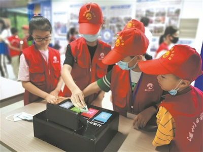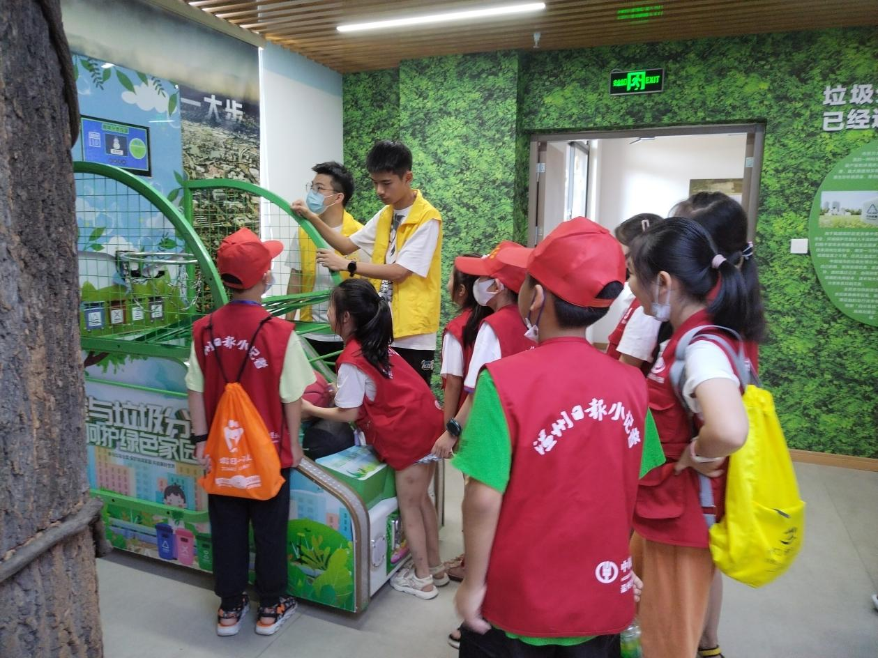 本次参观,便是温州日报小记者团队的第一次活动。本次小记者团队共计30人,分别是来自于蒲鞋市小学、建设小学、籀园小学的三到六年级的小朋友们,他们在电教室学完了垃圾分类知识,便兴致勃勃地玩起了跳舞机、投篮机、游戏机……在游戏中“检验”自己刚刚学到的知识。