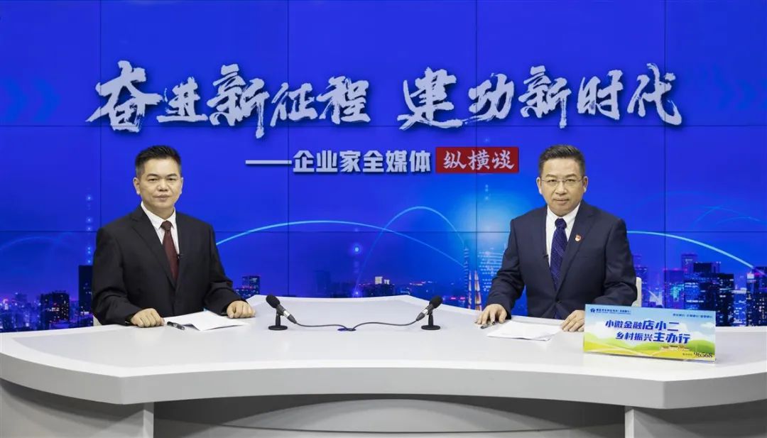 湖北省农信联社党委委员、副主任杨柳(右)做客湖北日报企业家全媒体纵横谈。(湖北日报全媒记者 柯皓 摄)