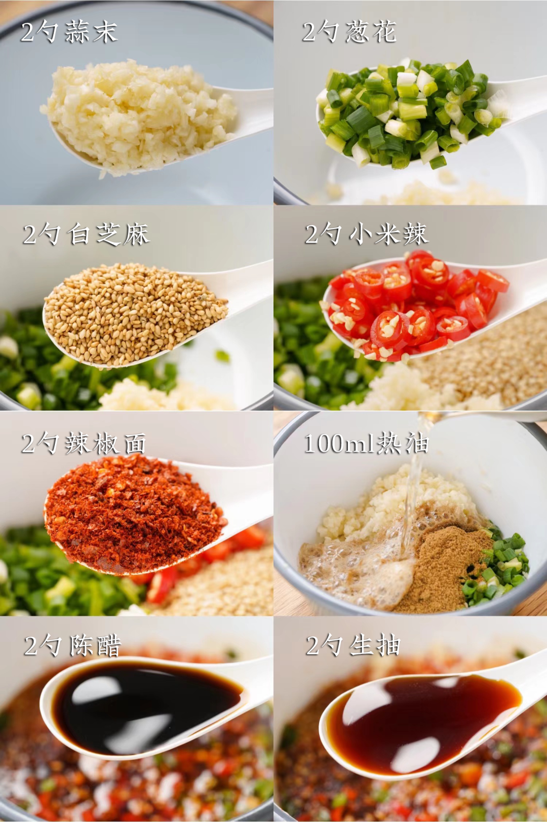 *不辣版的料汁:不用小米辣圈,将辣椒面换成2勺孜然粉即可。