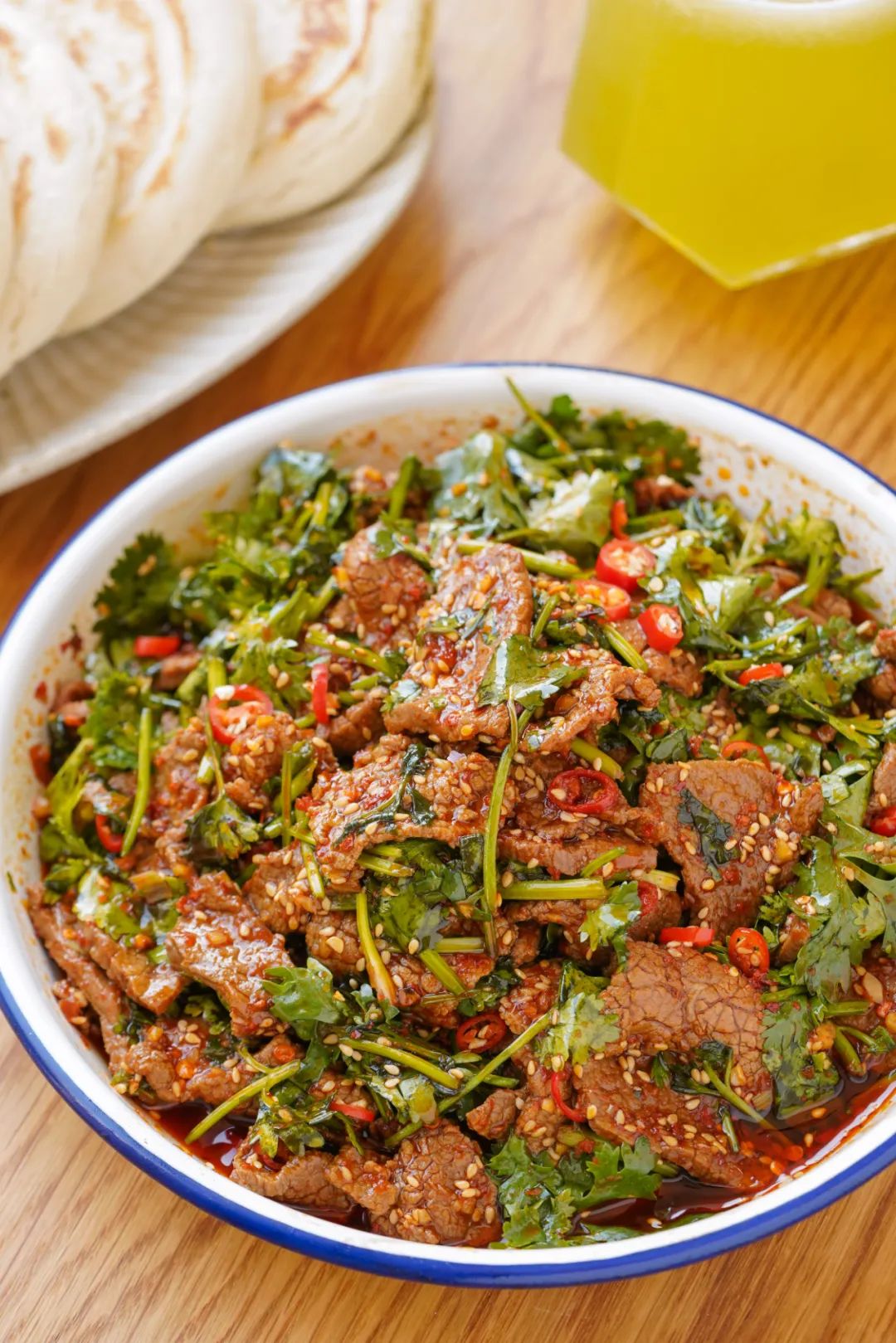 前阵子我刚做过一次香菜牛肉。评论分两拨,一拨是等有钱了想雇人在地球上种满香菜的,另一拨是等有钱了想雇人拔光地球上所有香菜的。由此得出:香菜是经济发展的动力之一。于是我打算,把这个惹人爱又惹人嫌的系列做下去。今天,分享三道我喜欢的香菜做法。第一道,是满盆除了香菜还是香菜的《腌香菜》。听说有的地区从小吃到大?那可太幸福了吧。只有对香菜足够的热爱,才敢面对这道足够浓郁的凉拌菜,配米饭或者白粥就是美味的一餐,最简单质朴的家常味道。第二道,隔夜米饭的消耗王者《香菜炒饭》。炒饭我做过很多,加了香菜无疑让风格鲜明了好几倍。出锅后香到头掉,能让所有爱吃香菜的人魂牵梦绕的一碗碳水。再加上回教过的,我同事的妈妈秘制的《香菜拌牛肉》,都是很朴实的调料,但就是特别好吃。下拉,感受今日餐桌的心动吧。秘制腌香菜1、将约200g香菜根和100g带叶香菜杆洗净,切成约3cm左右的大段。半根胡萝卜切成丝。3、加入2勺生抽、2勺陈醋、2勺油泼辣子、2勺单山蘸水、1勺蚝油、1勺白砂糖、2勺蒜蓉和1勺小米辣椒圈,拌匀即可。不辣版料汁:2勺生抽、2勺陈醋、1勺蚝油、2勺蒜蓉、1勺白砂糖。