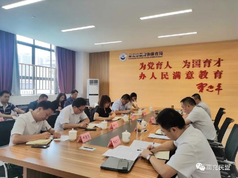 为高质量完成2022年市委建言献策会重点调研课题,7月20日,民盟南充市委主委袁伟平率调研组到南充市教育和体育局,开展区域教体中心建设专题调研。盟市委副主委覃发超、唐虎鸣等陪同调研。