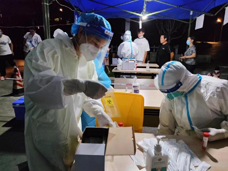 7月18日,温江区人大常委会副主任、民盟温江区总支副主委资蓉一行,来到和盛镇烈士街、东宫寺社区核酸检测点督导全员核酸检测工作;温江区社保局政务服务科科长、盟员樊军,温江区健康产业服务中心副主任、盟员陈凯,温江区检察院检委会专职委员、盟员李莲参与全员核酸检测工作;温江区众力社会工作服务中心理事长、盟员田野带领自身社会组织人员10余名,支持温江区柳城街道新华社区、公平街道江安社区、寿安镇复兴社区等地开展全员核酸检测工作。