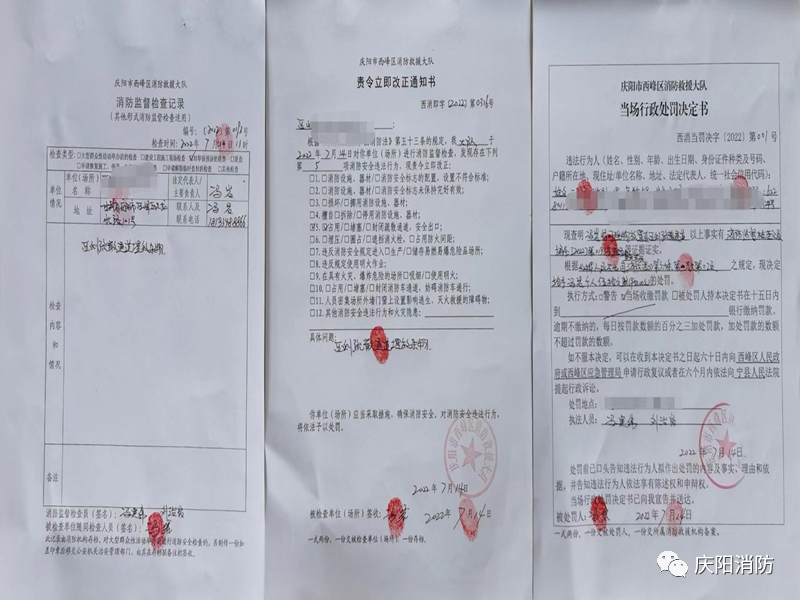7月14日,西峰区解放路街办消防工作站在开展检查中发现一宾馆存在疏散通道堆放杂物的安全隐患,执法人员立即约谈场所负责人,在其辖区大队的指导下依照相关法律法规,下发《责令立即整改通知书》及《当场处罚决定书》,涉及罚款50元。据了解,这是庆阳市成立乡镇(街道)消防所后开出的首张罚单。随后,镇原县城关镇消防工作站对2家单位进行了行政处罚。