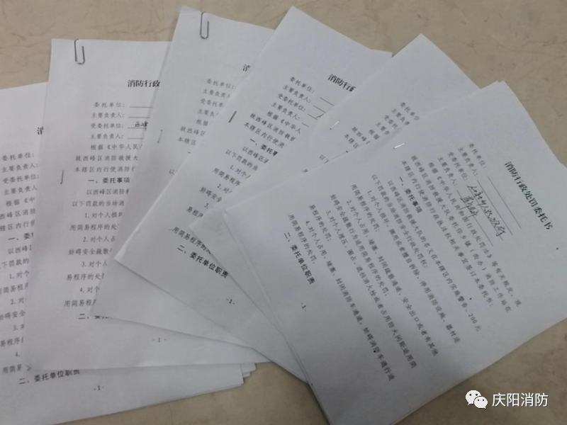 庆阳市消防救援支队多次协调汇报市委编办、市司法部门,借鉴应急管理部门委托执法模式,制定《庆阳市乡镇(街道)消防委托执法工作方案》,探索建立符合基层实际的权责一致、规范运行、精简高效、保障有力的基层消防行政执法机制。各消防救援大队结合实际制定《消防委托执法工作方案》,按法律程序,经法制部门审核、政府批准,与69个乡镇(街道)签订了《委托执法协议》,并向社会进行公告。