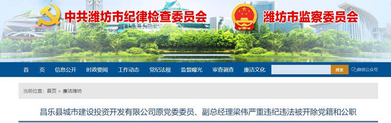 齐鲁网·闪电新闻7月21日讯 日前,昌乐县纪委监委对昌乐县城市建设投资开发有限公司原党委委员、副总经理梁伟严重违纪违法问题进行了立案审查调查。