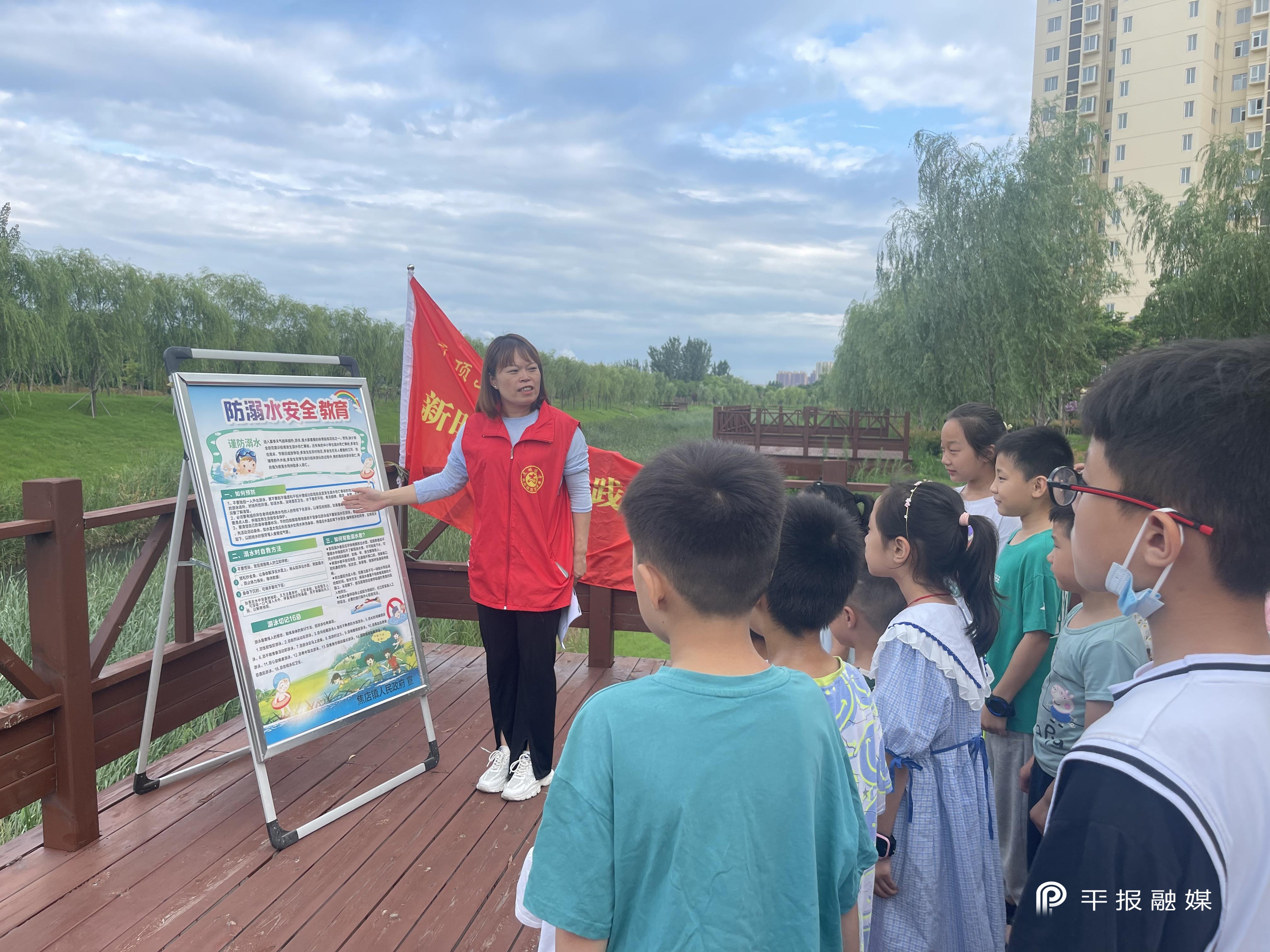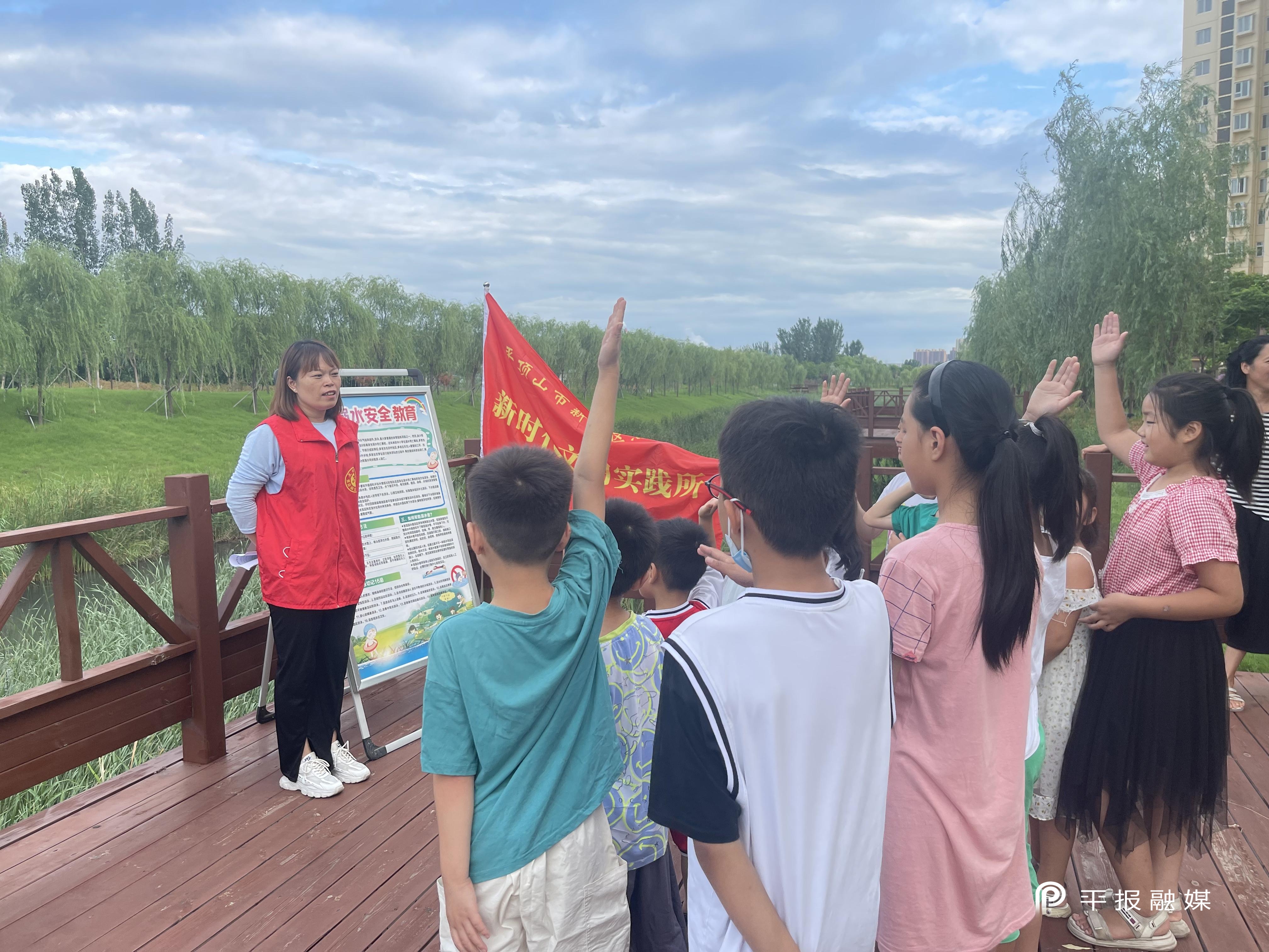 “大家发现有人落水,自己千万不能盲目下水营救,不能因为自己会游泳就逞英雄下水救人,应该及时拨打110、120急救电话或者找周围成年人帮忙是救援成功率最高的方式,能真正帮助落水者获救。”7月20日,新华区焦店镇新时代文明实践所志愿者郭向华正在给小朋友们讲解遇到溺水事故时的急救措施。