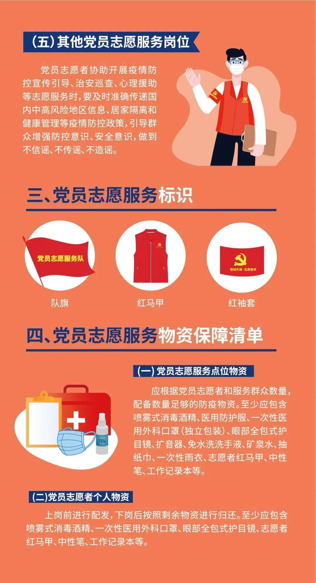 《成都市疫情防控一线党员志愿服务工作指南》对疫情防控一线党员志愿服务队伍的成立、岗位及工作要求、志愿服务标识、物资保障清单、个人防护要点等方面作出了详细全面的指导。