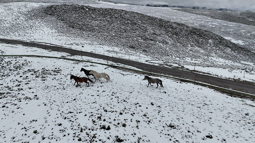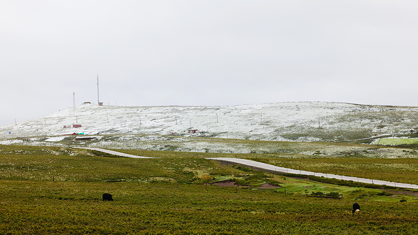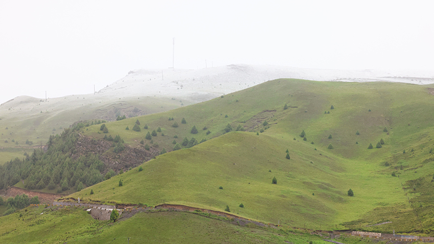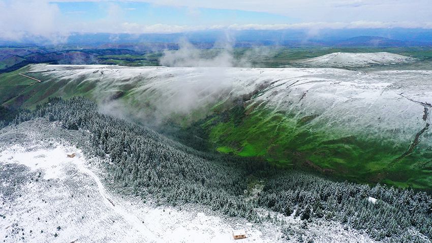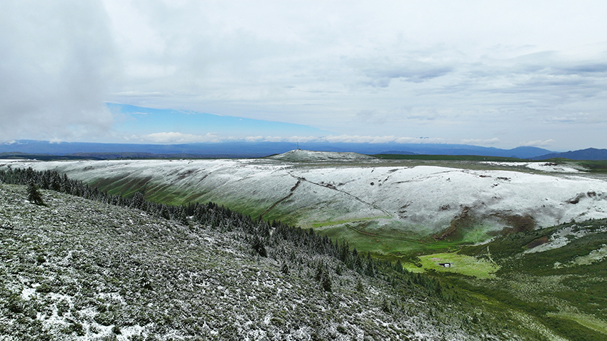 7月21日,祁连山下的甘肃张掖肃南裕固族自治县皇城镇、康乐镇、大河乡出现罕见的降雪天气,累计降水量达30毫米,积雪深度达4-5厘米,雪中草原宛若一幅幅风光画。(武雪峰 安维斌 华尔丹 摄)