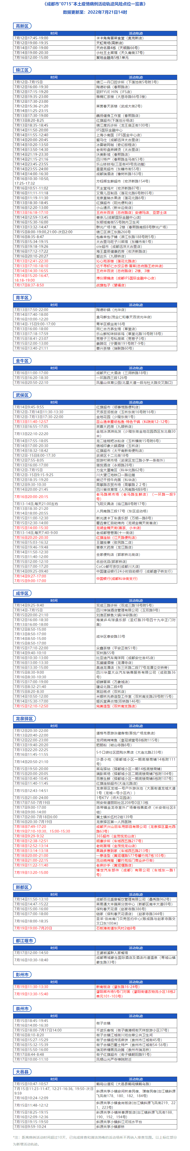 《成都市“0715”本土疫情病例活动轨迹风险点位一览表》
