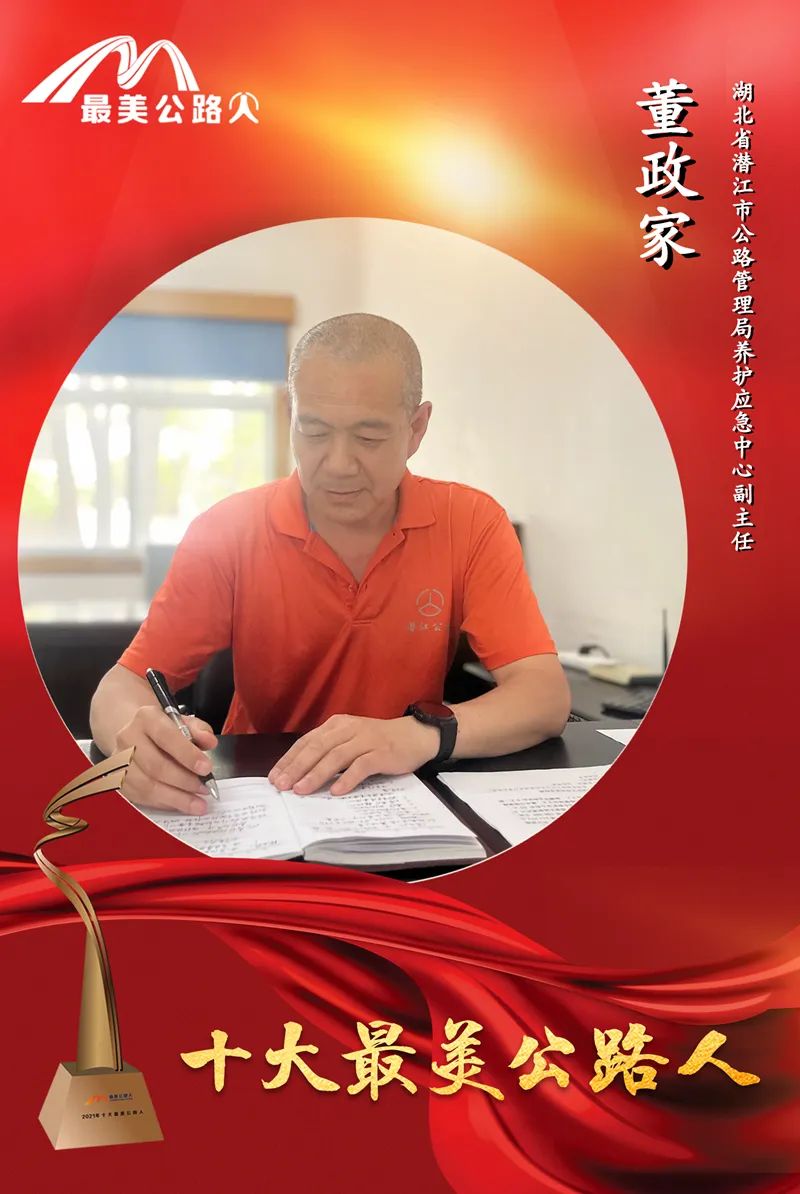 自1995年3月退伍进入公路行业至今,现任湖北省潜江市公路管理局养护应急中心副主任的董政家始终扎根一线,勤于学习,矢志钻研,把全部的心血和汗水都倾注到公路养护事业上,实现了从一名普通养路工到两届“全国交通技术能手”的巨大转变。