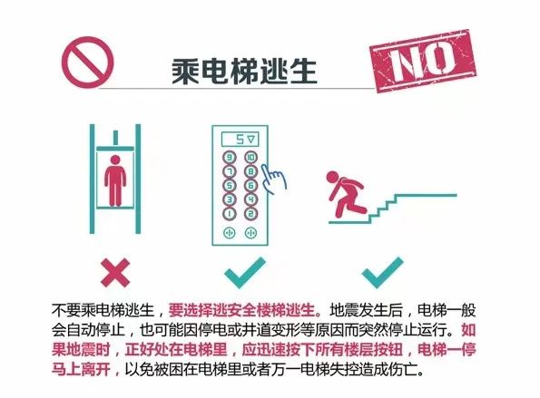 首先,如果我们在商场或较高楼层中就餐,遇到地震时,切记不可在慌乱中乘电梯逃生;