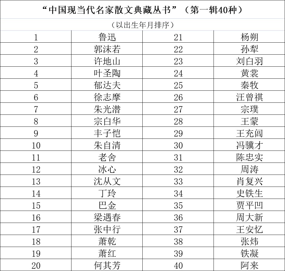 为了全面展示二十世纪以来中国现当代散文一百多年的创作成就,人民文学出版社精心策划编辑出版了“中国现当代名家散文典藏”丛书(第一辑40种),近期在京隆重面世。