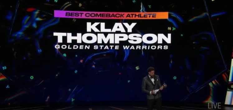 克莱-汤普森获得了ESPY年度最佳复出运动员奖。金州勇士则获得了ESPY年度最佳团队奖。