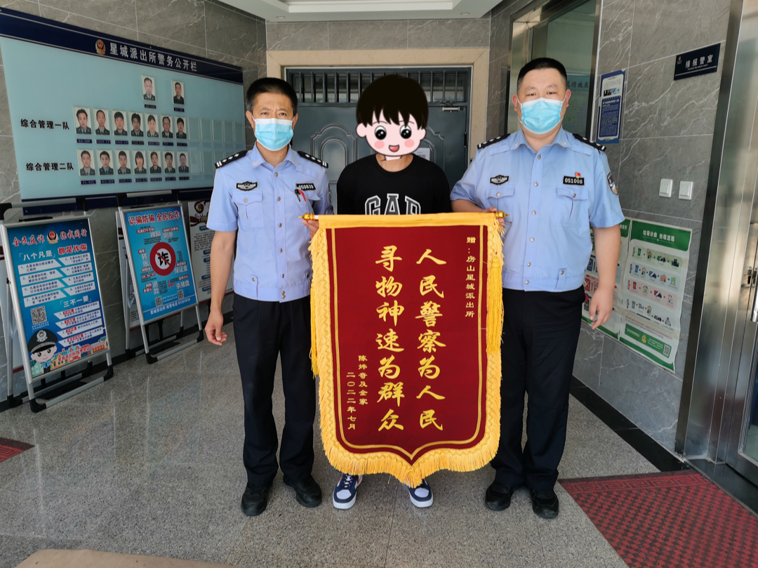 7月15日上午,自行车车主向星城派出所送来锦旗向民警表示感谢。