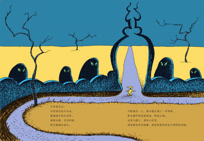 就像《去无忧城真麻烦》里的这个小家伙一样,他历尽千难万险却发现真正的无忧城并不存在,回头看看当时促使他出发的那些麻烦,似乎也都不再是难题,这一路上,他孤独地寻找,勇敢地走下去,其实早已在内心建立起属于自己的“无忧城”。