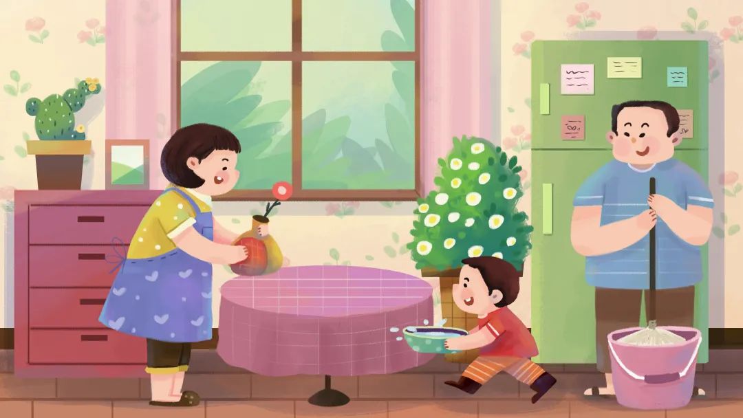 明确劳动目标,激发孩子的参与感。每周一次贴出家务劳动内容,列出家长和孩子各自应做的事情,不能让孩子感到父母只是在吩咐他做家务,要和孩子一同体验劳动的过程。