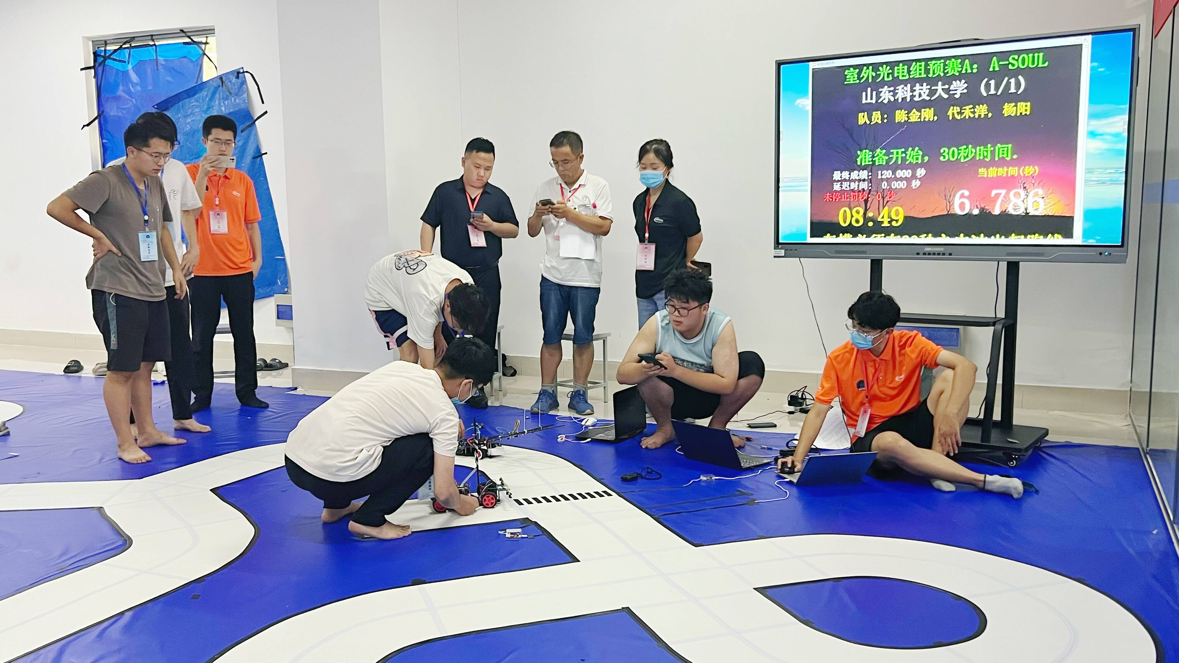 本次竞赛分为赛区选拔赛与全国总决赛两个阶段,全国共设八个赛区。山东赛区的比赛采用线下专家进校、线上直播结合的方式进行,在7月21日——7月24日期间举行。竞赛设电磁组、摄像头组、创意组、视觉组、充电组、信标组、交通组、单车组、多车组、越野组等十余个组别,共有来自省内66所高校的509支队伍,千余名学生参加。参赛学生自行设计车模的检测控制电路,并完成焊接、组装和调试等一系列工作。