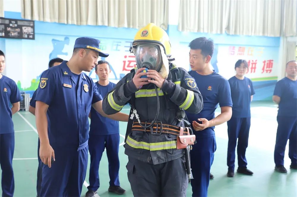 训练期间,组训班长对原地着战斗服、侦检仪器使用、沿水带撤离等科目进行细致讲解,要点突出、流程清楚、内容全面,全体参训人员就相关训练科目进行练习,随后针对训练科目,组织全体人员逐一考核,针对考核中存在的问题,组训班长给予纠正,并再次示范讲解,确保训练取得实效。