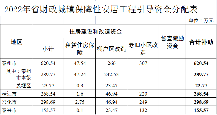 本次下达省级引导资金60000万元,其中:租赁住房保障9381.67万元,用于公租房、保障性租赁住房建设、发放租赁补贴;棚户区改造14518.33万元;老旧小区改造32500万元;督查激励奖补3600万元。
