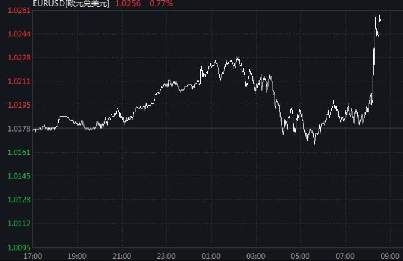 在欧洲央行宣布加息后,欧元兑美元汇率短线急速拉涨近50点,截至发稿报1.0256。欧股进一步反弹,法国CAC40指数涨0.36%,意大利富时MIB指数跌幅收窄至0.5%左右,此前跌逾2%。