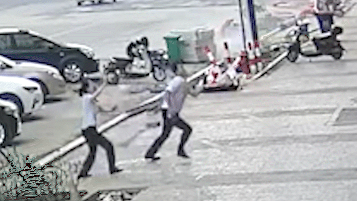 两名路人快步跑到楼下