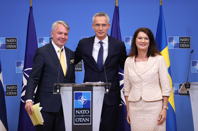 据此前报道,芬兰和瑞典以俄乌冲突为由申请加入北约,但这遭到土耳其的强烈反对。土耳其指责这两个国家支持被其认定的“恐怖分子”。上月底,三国领导人在西班牙马德里参加北约峰会期间进行了会晤。随后,三国外长签订了备忘录,土方随即改变反对立场,同意北约邀请瑞典和芬兰加入。根据土耳其总统办公室发表的声明,瑞典和芬兰承诺,将与土方全面合作打击土方认定的恐怖组织,不再支持这些组织,还要解除对土耳其的武器出口限制。
