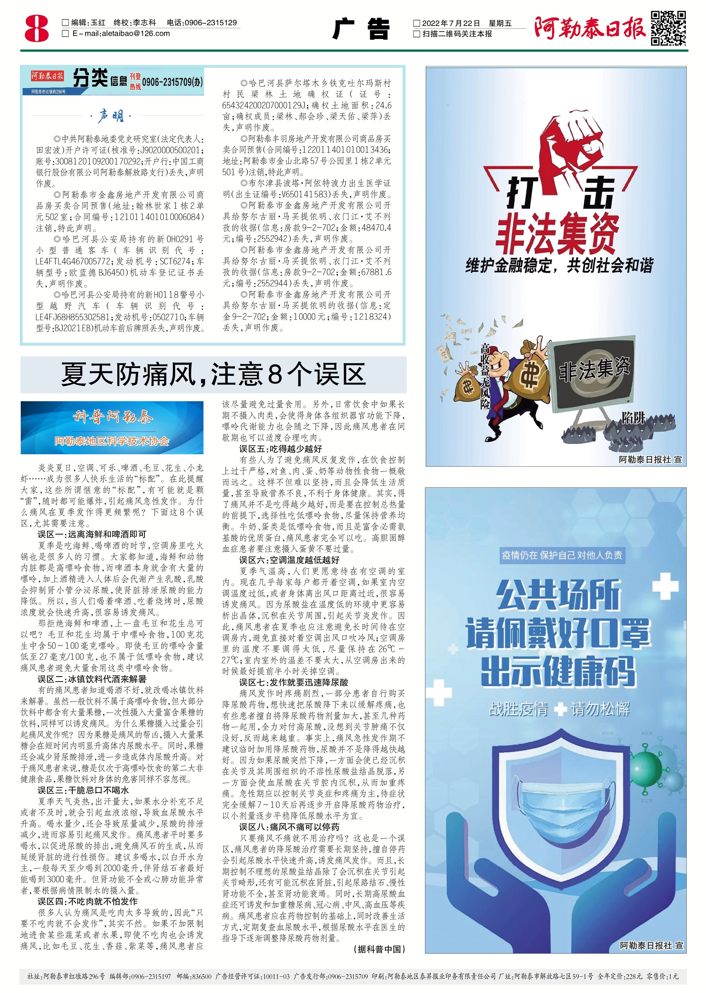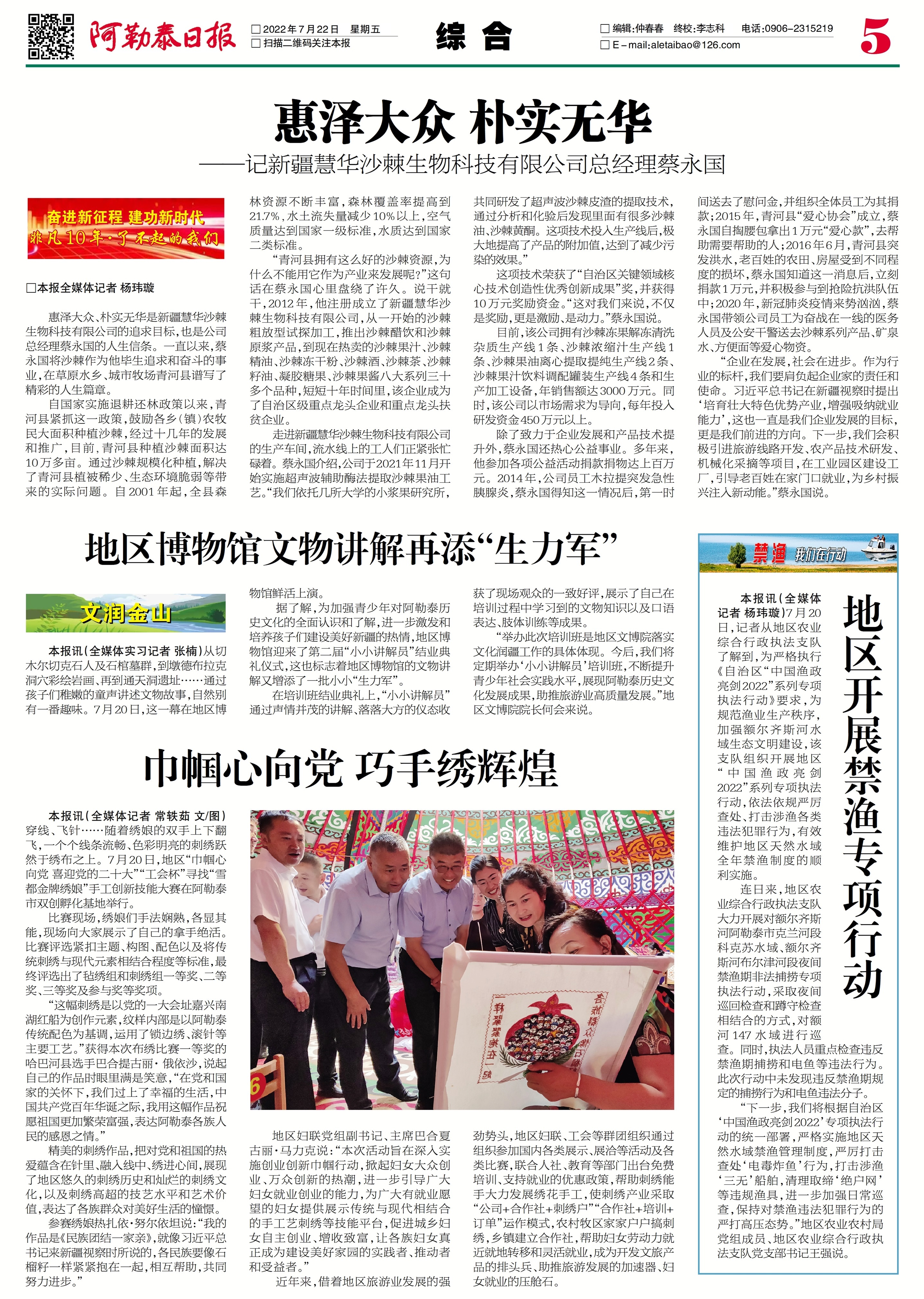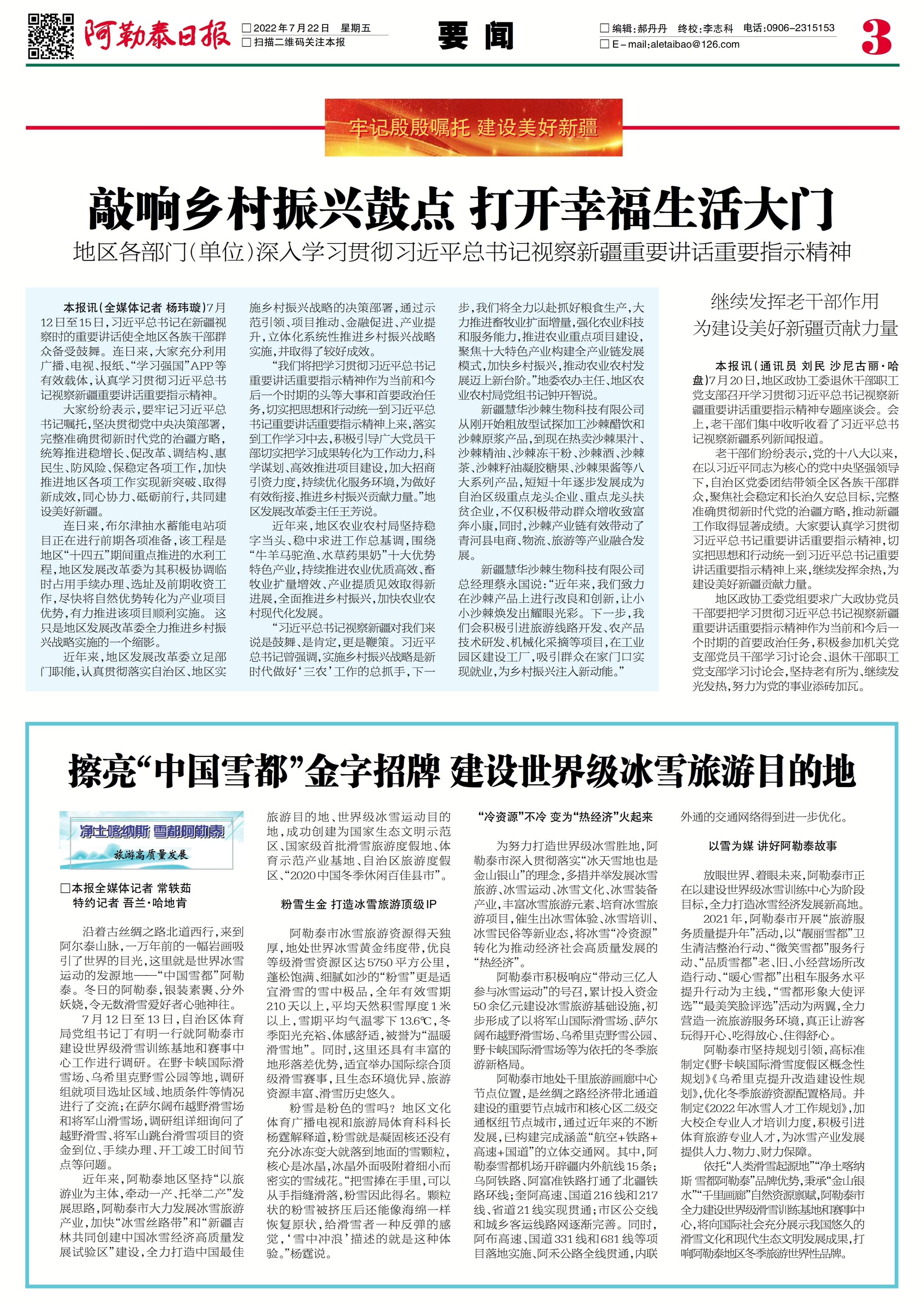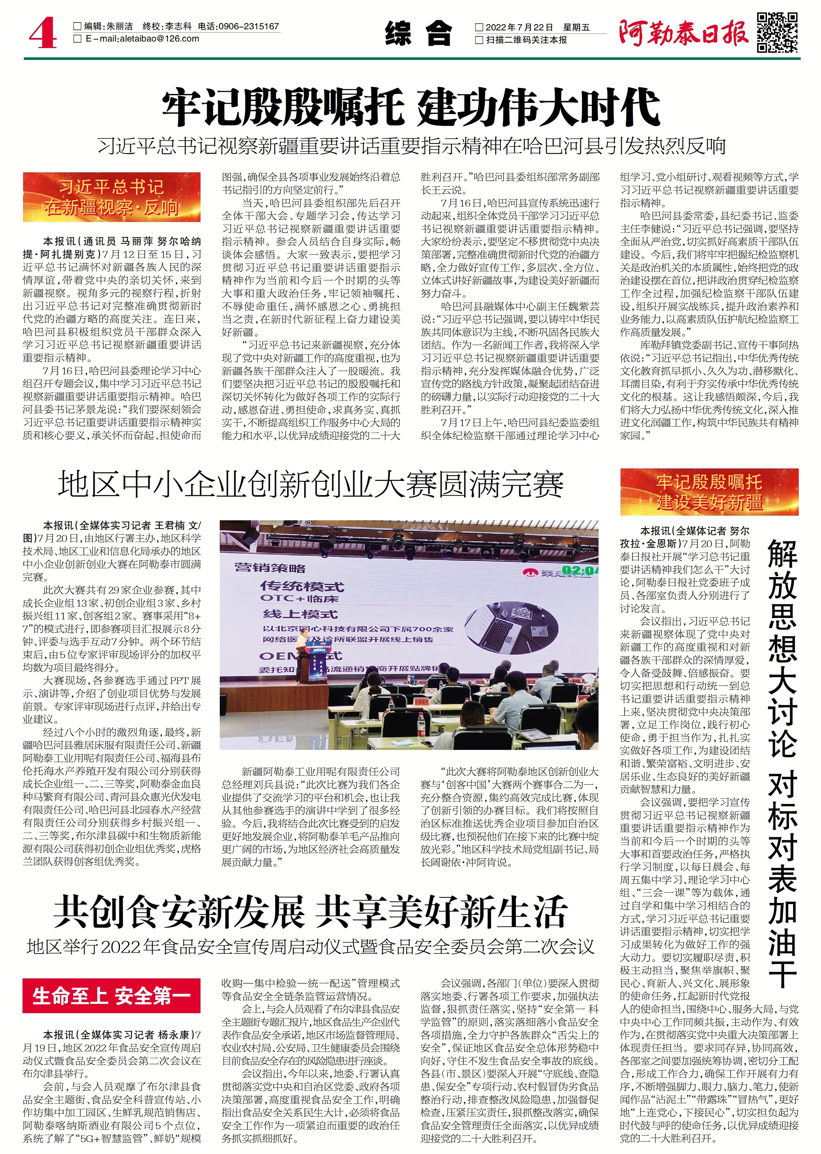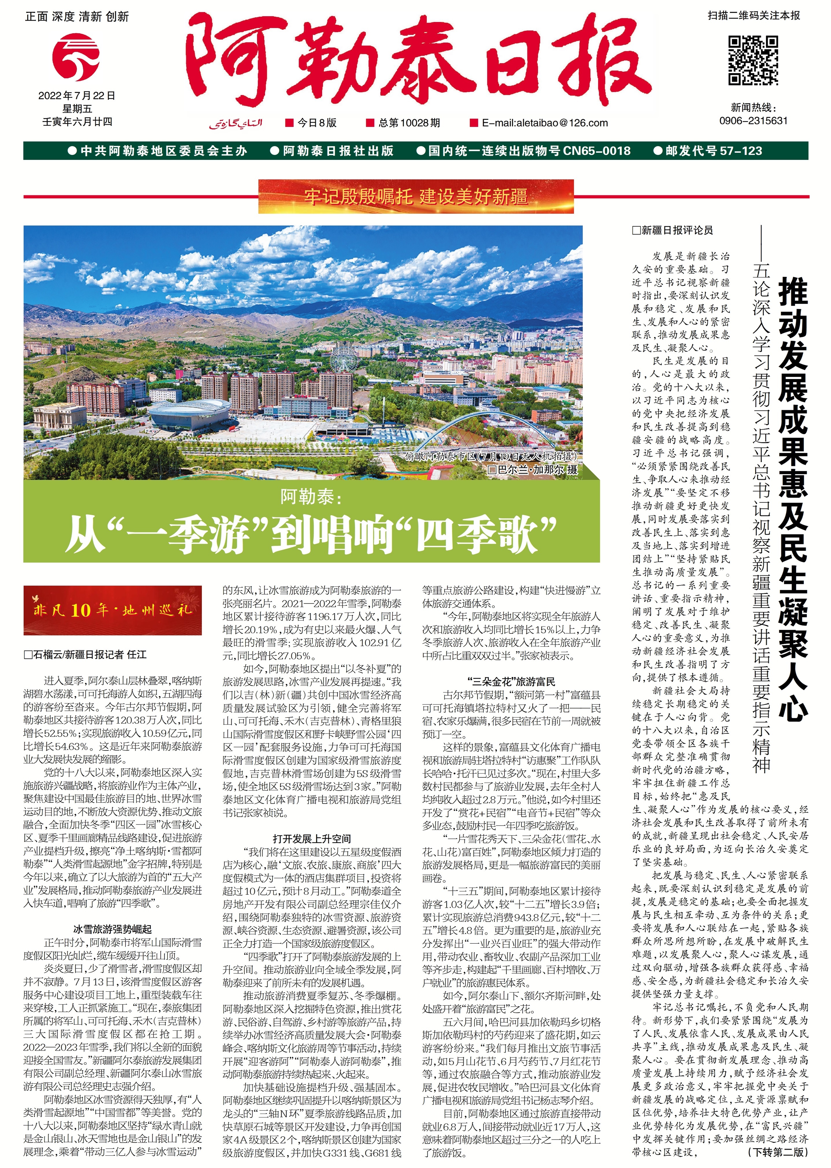【阅报专栏】 2022年7月22日《阿勒泰日报》