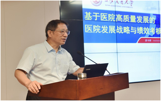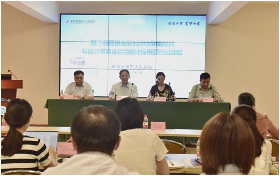 为进一步提升医院的综合管理水平,有效建立绩效管理和医院战略规划体系,促进医院可持续高质量发展,7月20日下午,陕西省第四人民医院组织召开基于高质量发展的医院战略规划与绩效考核综合当量法应用项目启动会。院领导班子成员、职能部门主任、部分临床科室主任和护士长现场参加会议。省卫健委医政医管局派员指导、西安交通大学胡书孝教授及团队成员受邀出席会议并专题辅导。院党委书记郭亚东主持会议。会议以“现场+线上”的方式进行。