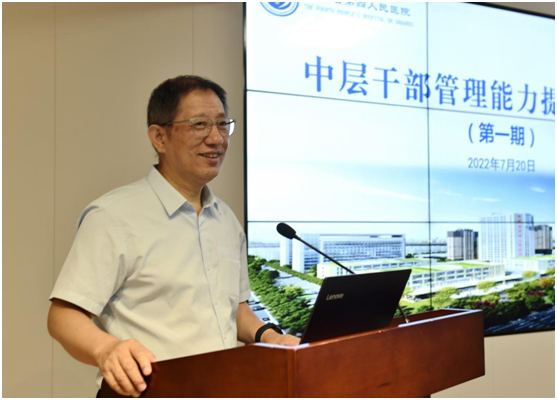 胡老师以“基于高质量发展的医院发展战略与绩效考核”为主题,从医院健康发展需要智慧型管理干部、医院发展战略的意义及管理者责任、医院高质量发展的内涵及实践路径、医院管理诊断与发展战略选择等方面进行了辅导,结合医院发展数据分析及健康中国发展战略要求,从大健康、大格局、大管理视角,建议医院未来发展立足三级医院,打造西安市东南郊医疗中心,建设陕西省医疗健康服务中心,从学科建设、人力资源、设施设备、绩效考核、医院人文、智慧医院等方面进行科学布局及配置,全方位提升医院服务人次数及工作效率,实现从数量、质量到当量的高质量发展。胡教授针对新聘任的中层管理干部陈述了管理的本质是责任与贡献,领导的本质是影响力,而不是职位与权力,更不是单一的命令与控制。医院中层管理干部是规划者、组织者、执行者,建议大家要十分重视希望管理,通过管人到达理事。大家从中获取当前最新医改信息及管理理念,受益匪浅。