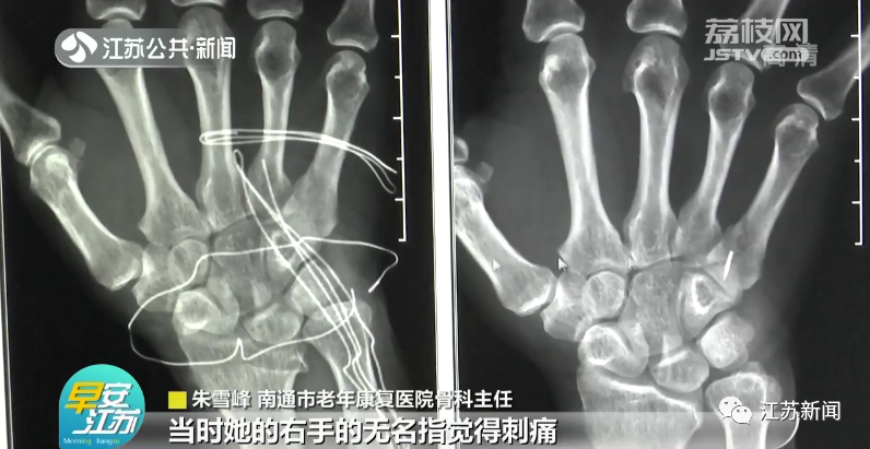 “大概是十七年前,倪女士在制针厂工作,当时她右手的无名指觉得刺痛,但没看到有断针,只有一个小破口,就到当地卫生所去处理了一下。”南通市老年康复医院骨科主任、主任医师朱雪峰介绍。
