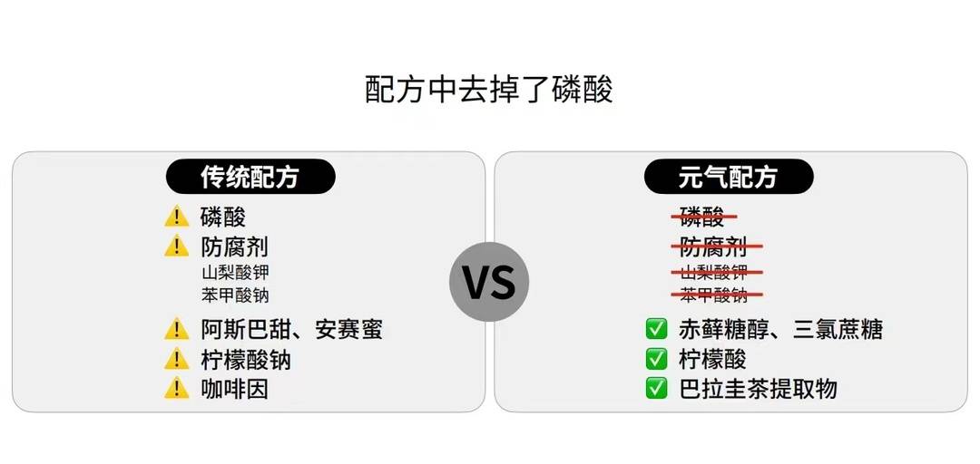 鹿角介绍说,首先,元气森林决定去掉传统可乐配方的磷酸。有研究表明,过量摄入磷酸盐对人体骨骼和心脑血管都有一定危害,每天摄入700mg磷就会影响骨骼健康,每天摄入1.8g磷酸盐就会导致龋齿。而饮料中常用的磷酸盐添加剂比食物中本身含有的更容易被人体吸收。