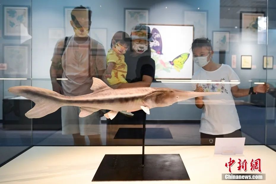 观众在北京自然博物馆参观白鲟标本。中新社记者 田雨昊 摄